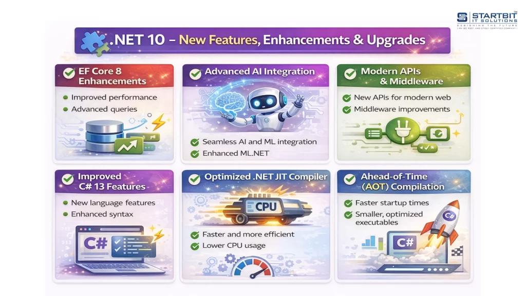 At Startbit Solutions, we help businesses leverage every aspect of .NET 10. Our expert team ensures seamless upgrades, optimizes application performance, implements advanced security practices, and modernizes your development workflow. Whether it’s cloud-native apps, enterprise systems, or real-time web APIs, Startbit Solutions provides end-to-end support to maximize the benefits of .NET 10, helping your team deliver faster, smarter, and more reliable applications.